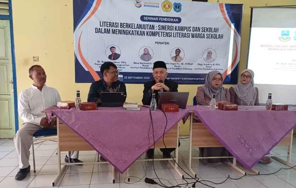 Pojokgarut.com – Di balik dinding laboratorium IPA SMPN 1 Karangpawitan, Senin pagi 22 September 2025, semangat belajar tak hanya milik murid. Tiga puluh guru dengan wajah penuh rasa ingin tahu memasuki ruangan. Mereka datang bukan sekadar duduk, mencatat, lalu pulang. Mereka hadir untuk menyerap energi baru dari sebuah gagasan besar literasi yang membumi.