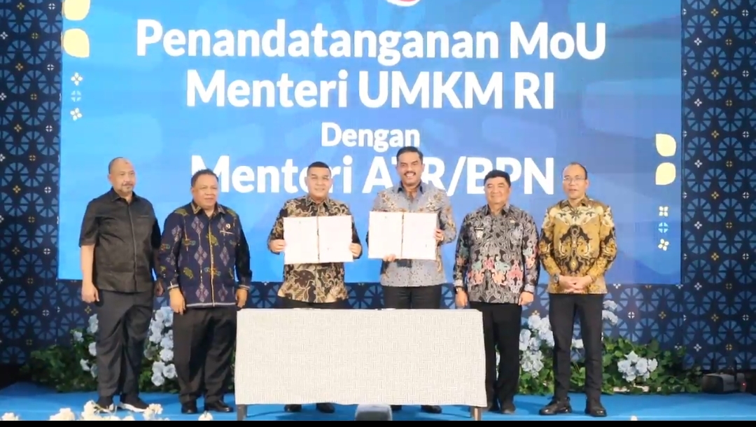 Caption : penandatanganan MOU kementerian UMKM dengan kementerian ATR /BPN (foto //raja Risnandi)